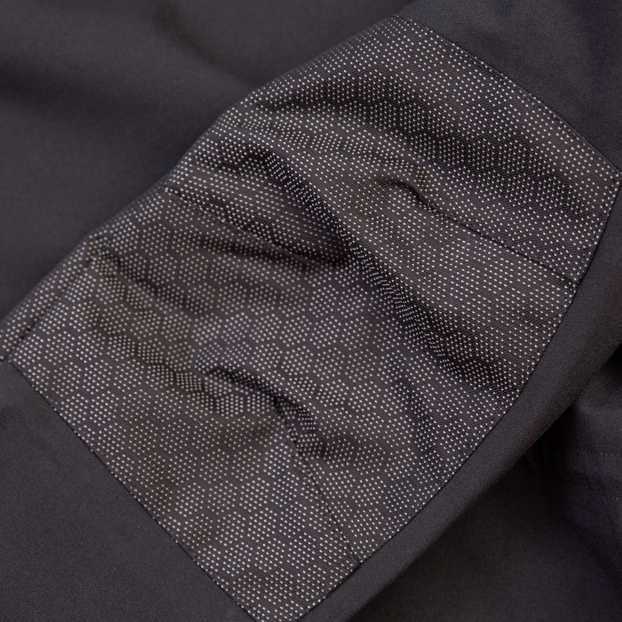 - Reinforced patches on the shoulders, elbows and forearm made from hexagonal [patterned fabric.Â