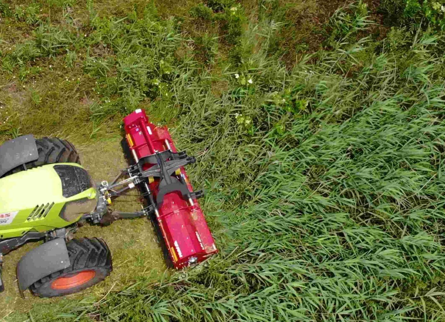 This mulcher has the option to attach to the front or rear of the tractor and a hydraulically-controlled offset. This means that it is particularly versatile.