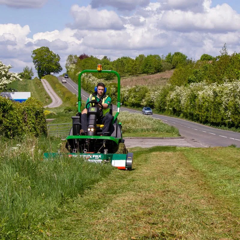 Cutting verges calls for excellent visibility and manoeuvrability in confined areas with the ability to work around road signs, trees and other obstacles. It also demands a mower that will cut long grass quickly and effectively. The FRX-150 is a flail mower and delivers in that respect leaving a far superior cut quality on long growth than a rotary mower.