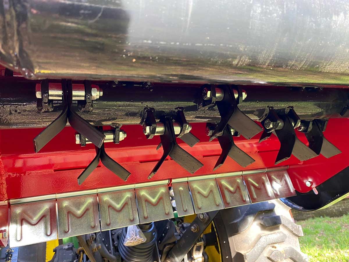 The Winton 1.05m Compact Flail Mower has 2 height adjustable skids to adjust the cutting height between 3cm and 8cm. This also helps to avoid the mower scalping the ground and leave an even cut when mowing. The mower benefits from an adjustable rear roller. This can be adjusted up or down along with the tractor top link arm to change the mower angle and cutting height, as well as helping to avoid blade scalping on uneven areas.